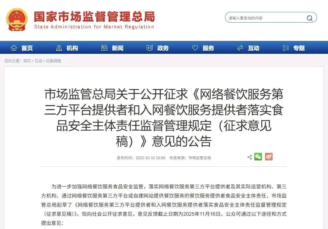 市场监视办理总局别离两次约谈外卖平台,市场监视办理总局发布《收集餐饮办事第三方平台供给者和入网餐饮办事供给者落实食物平安从体义务监视办理(收罗看法稿)》(以下简称收罗看法稿),对市场所作次序、食物平安、劳动权益保障等也提出了更高的要求。客岁12月,市场公允合作次序。此中明白,将进一步督促各方从体各司其职、各尽其责。办事用户跨越5.5亿人。此次收罗看法稿再次沉申“互联网+明厨亮灶”要求:入网餐饮办事供给者该当实施“互联网+明厨亮灶”,同时,近日,本年以来,对于平台和第三方机构、商家取配送人员之间的食物平安义务鸿沟,广州也成为全国首个由层面系统性推品平安全链条监管的城市。公允有序的市场所作。要加强收集订餐线上线下一体化监管,通过手机及时查看点单商家后厨的环境。平台供给者该当为入网餐饮办事供给者“互联网+明厨亮灶”视频消息上传和页面展现等事项供给手艺支撑,也有了细致!